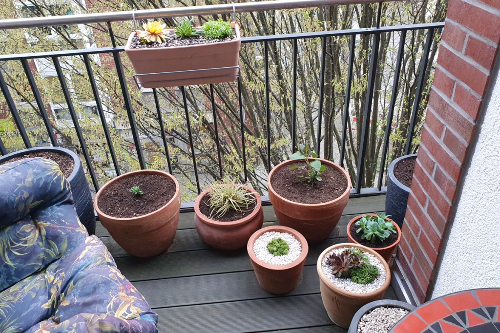 Gleichzeitig habe ich mein Körpertrainingsprogramm optimiert. Nun gehören Kniebeugen, Liegestützen und zwei Übungen am Theraband zur täglichen Routine, die meine Körperhaltung und mein Gangbild wieder etwas verbessern sollen. Auch stärke ich dadurch die Beinmuskulatur, sodass ich die Entscheidung über eine Hüftoperation wieder in fernere Zukunft verschieben kann. Tägliche Entspannung bieten die kurzen Phasen im Hängesessel auf meinem Balkon, auf dem zwölf Blumenkübel mit weiter fortschreitendem Frühling eine tolle Pflanzenpracht zum Beobachten und Genießen bieten werden. Den Heuschnupfen, der durch die Pappeln unmittelbar vor meinem Balkon dieses Jahr besonders heftig war, habe ich mittlerweile im Griff.